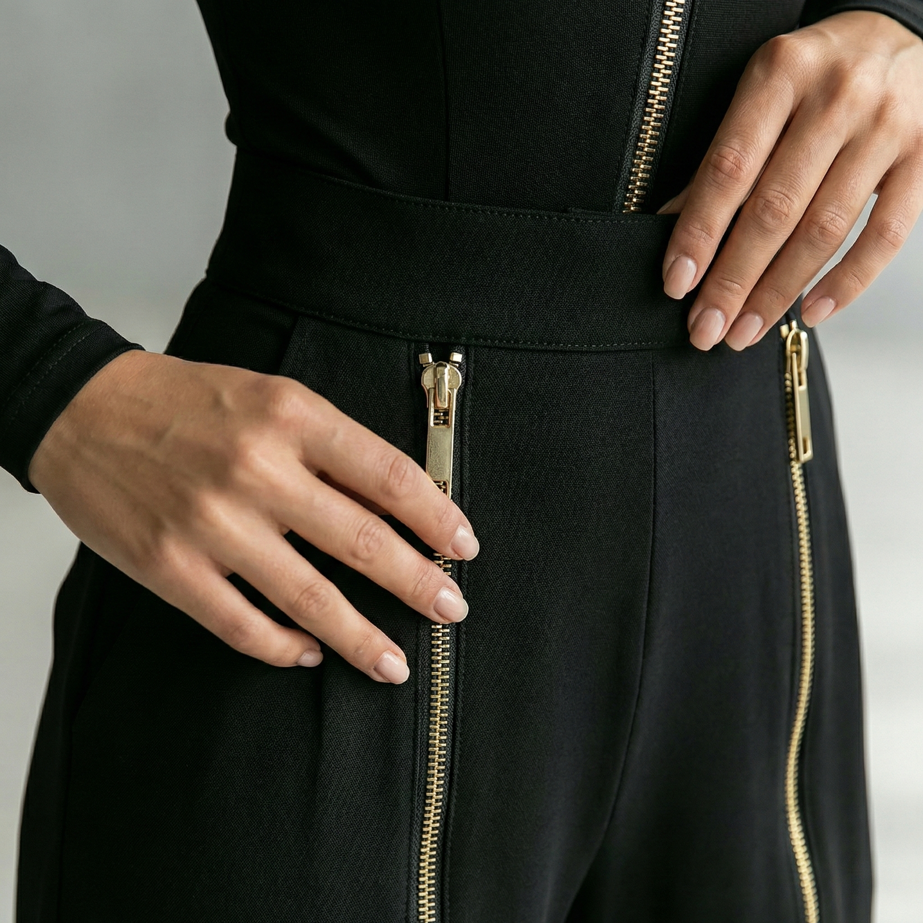 • Irregular Zip Detailing: Modern zipper accents add edge and visual interest without overpowering the silhouette.